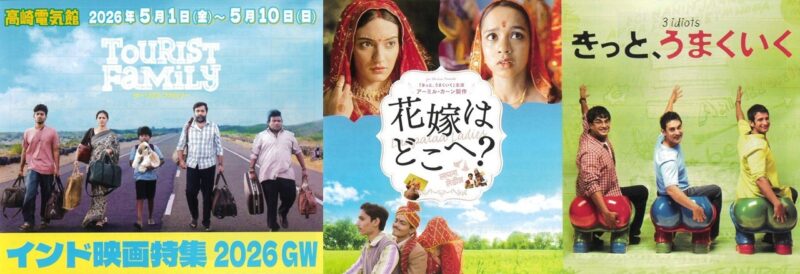 2026.4.13 2026年5月1日(金)~ 5月10日(日)インド映画特集 2026 GW 高崎電気館 たかさきコミュニティシネマ 2026年5月1日(金)〜5月10日(日) 上映料金 ※税込み 一般=1,500円/シニア(60歳以上・自己申告)=1,100円 /シネマテークたかさき会員・25歳以下=1,200円/高校生以下・障がい者手帳をお持ちの方、付き添いの方1名=1,000円 ※専用駐車場はございません。公共の交通機関をお使いになるか、お近くのコインパーキングをご利用ください。 ※当日付の高崎市内の駐車券、または駐車証明書をチケット購入時にご提示いただくと1名様の映画鑑賞券を100円割引いたします。 上映作品や上映時間、料金など詳しい内容はこちら Tweet 2025.4.01 たかさきコミュニティシネマ 特定非営利活動法人たかさきコミュニティシネマ について 2026.4.13 たかさきコミュニティシネマ 2026年5月1日(金)~ 5月10日(日)インド映画特集 2026 GW 高崎電気館 2026.3.26 たかさきコミュニティシネマ 2026年4月17日(金)~ 4月30日(木)オードリー・ヘップバーン/アルフレッド・ヒッチコック監督特集 高崎電気館 2026.1.14 たかさきコミュニティシネマ 2026年2月11日(水・祝)~ 3月1日(日) 若尾文子映画祭 Side.B 高崎電気館 more