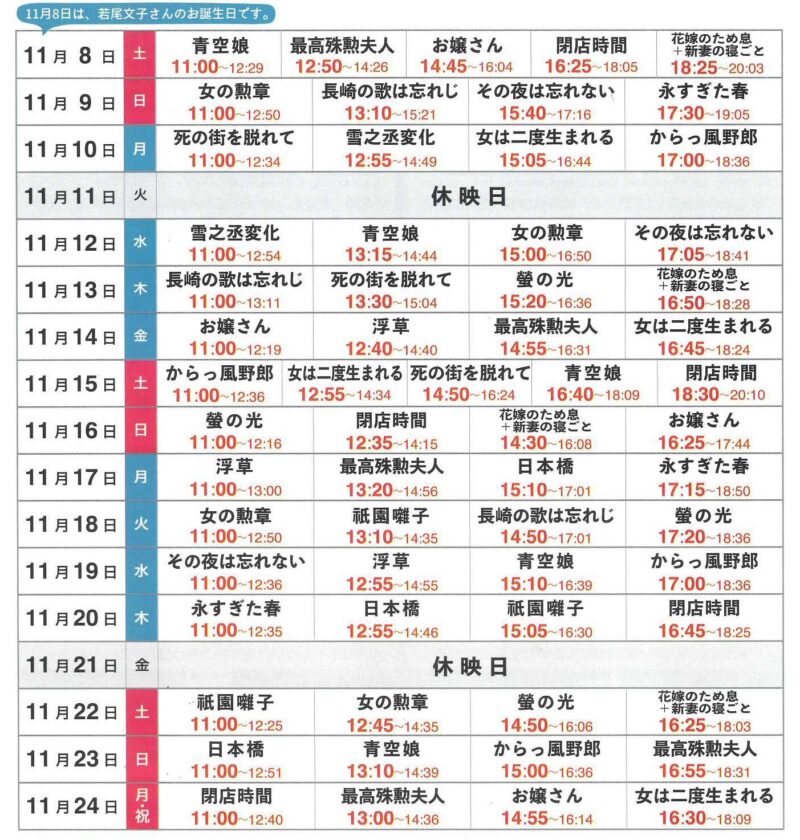 2025年11月8日(土)~ 11月24日(月・祝) 若尾文子映画祭 side.A 高崎電気館