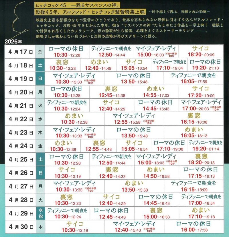 アルフレッド・ヒッチコック監督特集 高崎電気館